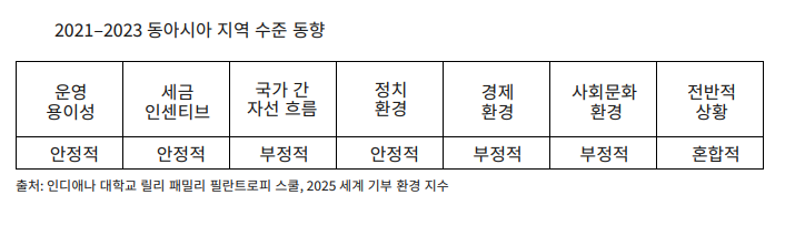 동아시아에서 전체적으로 자선활동이 늘어나고, 정부만이 해결하기 어려운 문제들을 다루고 있습니다. 이로 인해 네트워킹, 전문성 개발, 그리고 더 명확한 경력에 대한 요구가 높아집니다. 중국과 홍콩과 같이 일부 국제 파트너십을 제한하는 경우 비영리단체와 필란트로피 리더들의 요구를 충족하기 어려워질 수 있습니다. 그럼에도 희망적인 변화들이 많이 일어나는데, 국제 콘퍼런스가 열리고 모금 및 개발 교육과 네트워크가 확산되고 있으며 개인이 이 분야에서 전문적인 경력을 성공적으로 쌓을 수 있다는 인식도 높아집니다.