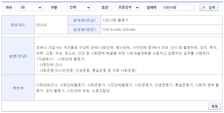 ‘시민사회 활동가’가 소분류 단위로 격상되며,